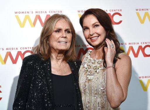 The Women's Media Center co-founder Gloria Steinem, left, poses with actress and "Women's Media Center Speaking Truth To Power" honoree Ashley Judd at The Women's Media Center 2017 Women's Media Awards at Capitale on Thursday, Oct. 26, 2017, in New York. (Photo by Evan Agostini/Invision/AP)