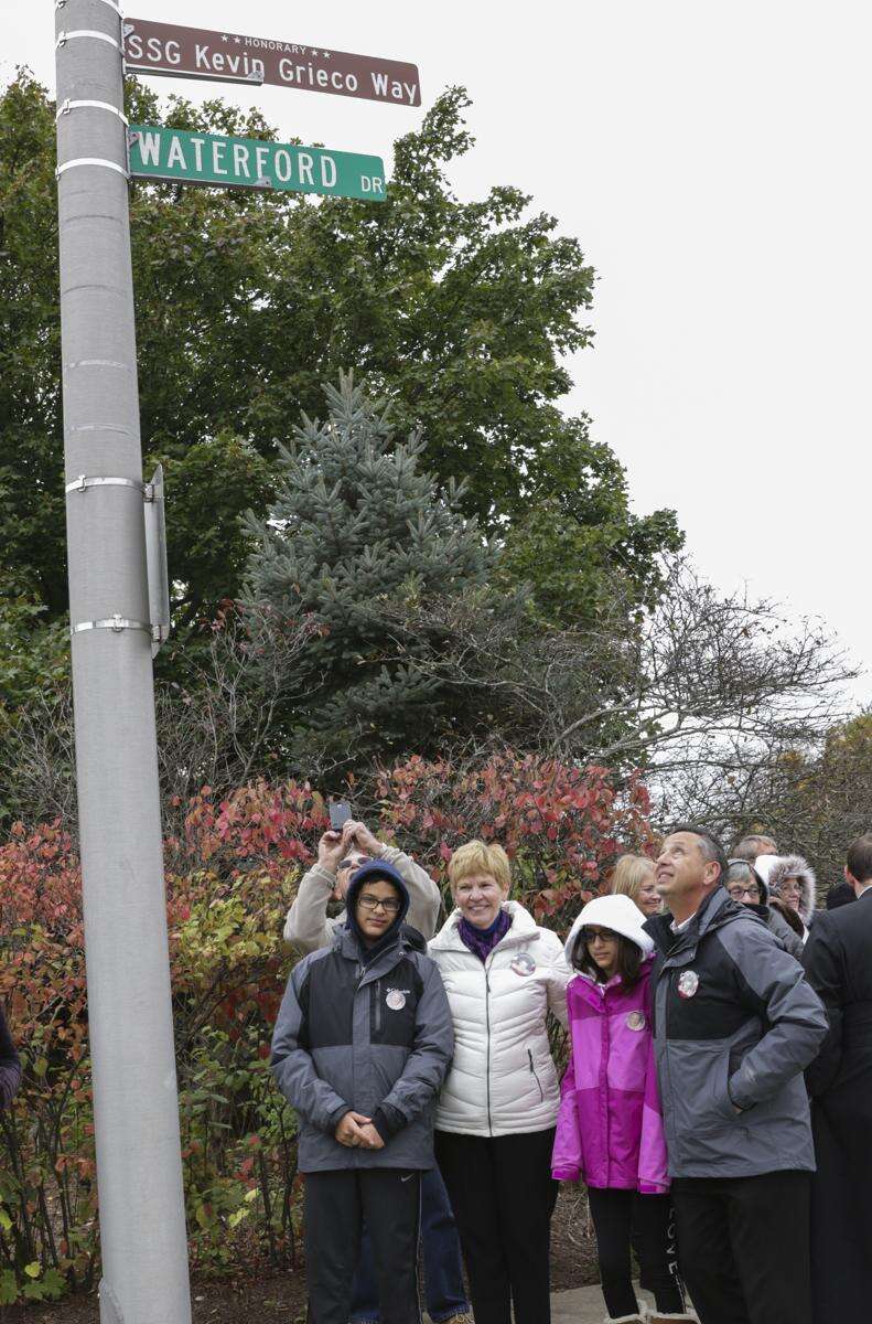 Kevin Grieco is buried in Arlington National Cemetery in Virginia, and his parents don't often have the opportunity to go there. So having the honorary street sign close to their house means a lot, Ralph Grieco said.