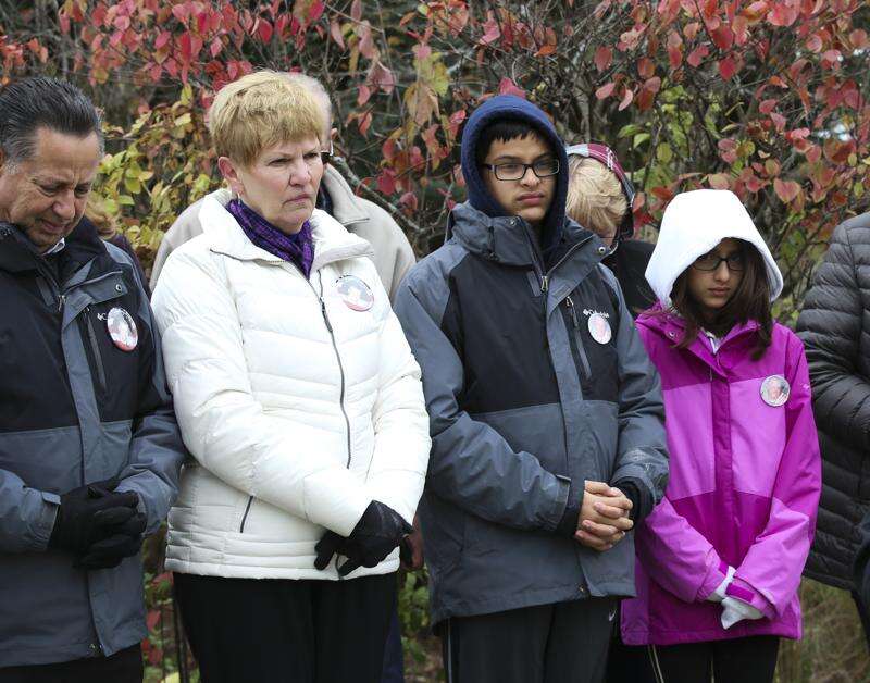 The Grieco family gathered with a large group of friends, neighbors and village officials at the corner of Winfield Road and Waterford Drive for a ceremony unveiling a street sign honoring Kevin Grieco.
