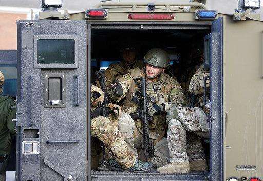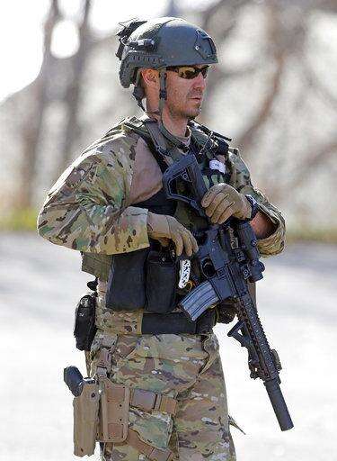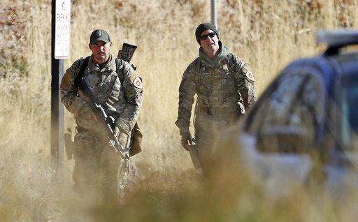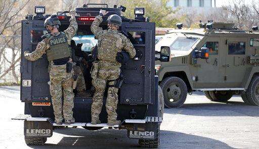 Law enforcement personnel load into a vehicle during a search of the hills near the mouth of Red Butte Canyon, Tuesday, Oct. 31, 2017, in Salt Lake City. A fatal carjacking attempt near the University of Utah late Monday left one student dead and touched off a campus-wide lockdown as hundreds of police officers swarmed buildings and nearby foothills and canyons in search of the suspected gunman. (AP Photo/Rick Bowmer)