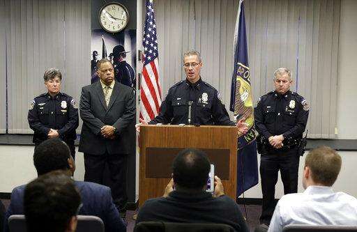 Indianapolis Metropolitan Police Department Chief Bryan Roach speaks during a news conference, Nov. 1, 2017, in Indianapolis. The chief said the department's firearms review board will meet Friday to begin assessing whether the officers followed department policies in the death of 45-year-old Aaron Bailey. A special prosecutor announced Tuesday that the officers won't face criminal charges in the shooting. (AP Photo/Darron Cummings)