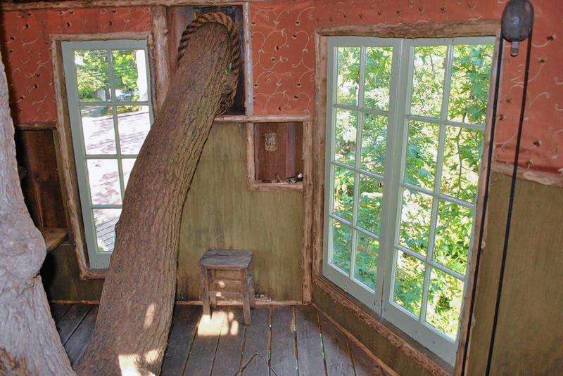 I was last at the Moitriers' in 2009 when I was focused on two features driven by Pierre's sense of garden artistry (being French helps with the aestheticism). The first is a meticulously crafted treehouse, high in a sweet gum tree in the rear of the lot. With its wooden siding and cedar shake dormer roof, the folly in the sky has a fairy-tale quality about it. It is so handsomely detailed inside that once you are in it, you might forget you're sharing the space with a tree but for the presence of its old boughs.