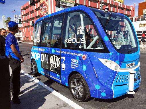 The oval-shaped shuttle that can transport up to 12 people has an attendant and computer monitor, but no steering wheel and no brake pedals. It uses GPS, electronic curb sensors and other technology to make its way. It was developed by the French company Navya and was tested in January in Las Vegas.