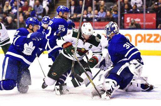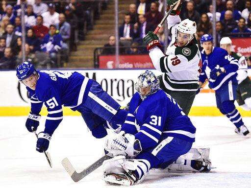 TORONTO (AP) - Minnesota coach Bruce Boudreau pointed to Toronto goalie Frederik Andersen.