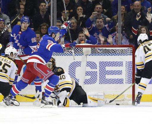 NOTES: Alain Vigneault earned his 200th win as Rangers coach. The only other New York bench bosses to reach the milestone are Emile Francis (342) and Lester Patrick (281). ... Rangers forward Mats Zuccarello played his 400th NHL game. ... Chara played his 834th game with the Bruins, passing Hall of Famer Dit Clapper for fourth-most by a Boston defenseman. ... The Rangers scratched high-priced defenseman Brendan Smith for the fourth straight game.