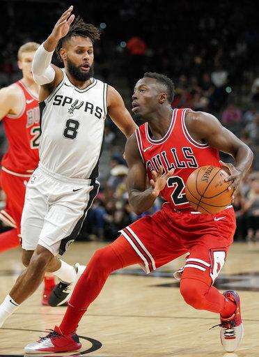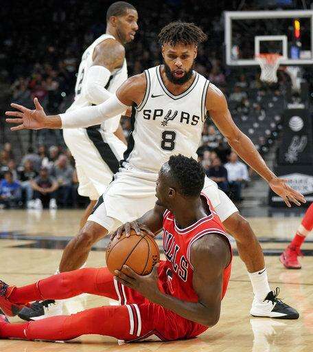Bulls: Chicago had nine steals after averaging 10.3 in its previous three games. ... The Bulls trailed by 22 points after the first quarter. It was the Spurs' largest margin after the opening period since leading by 24 in Chicago in 2014. ... Justin Holiday was 1 for 4 on 3-pointers, snapping a 15-game streak in which he made at least two 3s. ... The Bulls have lost four straight in San Antonio. Chicago's last victory at the AT&T Center was Jan. 29, 2014.