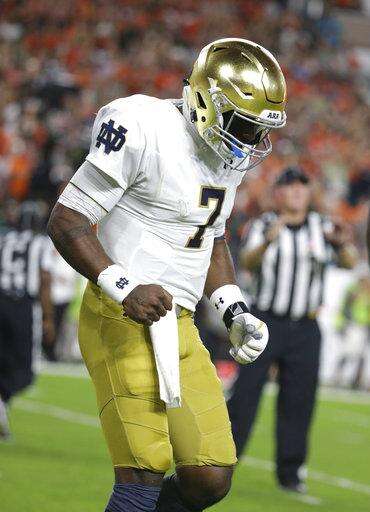 The turnovers - three by starting quarterback Brandon Wimbush before he was replaced in the second quarter by Ian Book, who threw an interception that was returned for a touchdown just before halftime - were more disabling than the hoopla and atmosphere leading up to the game.
