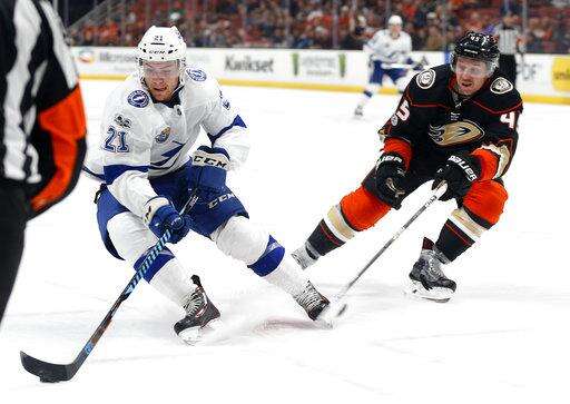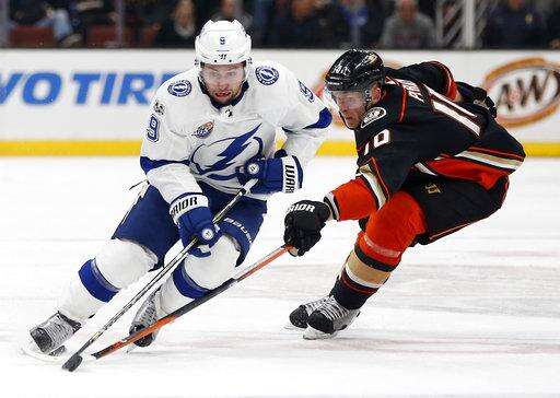 NOTES: The Lightning outshot the Ducks 17-7 in a scoreless first period. ... Anaheim had defeated the Lightning 4-1 in Tampa on Oct. 28. ... The Lightning have won five of their last six, are now 7-1-1 away from home and have won six consecutive on the road. ... Kunitz on the lengthy replay review on Montour's shot in the third period: "I was just hoping they didn't have a different view than we did."
