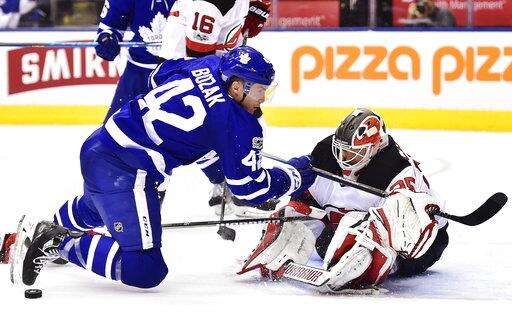NOTES: Leafs center Auston Matthews was on the ice for the optional morning skate but sat out his fourth straight game with an upper-body injury. Forward Nikita Soshnikov made his season debut for Toronto after being recalled from the Toronto Marlies of the American Hockey League. ... Devils center Travis Zajac made his season debut after recovering from surgery to repair a torn left pectoral muscle.