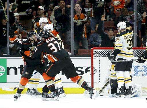ANAHEIM, Calif. (AP) - Kevin Roy and Josh Manson played their college hockey in Boston at Northeastern, and the Anaheim Ducks' two Huskies couldn't deny an extra jump in their stride when they got the chance to hurt the Bruins with big goals.