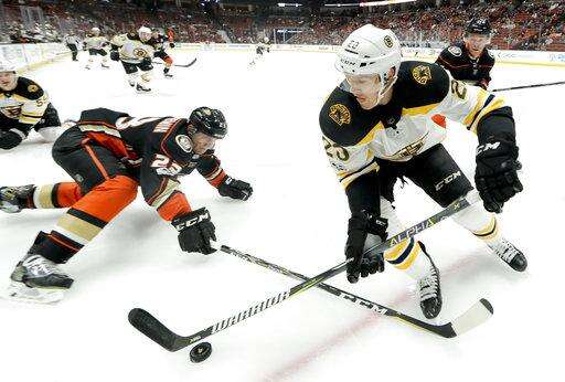 NOTES: Boston played a penalty-free game, and Anaheim didn't commit a penalty until 9:08 remained. ... Vermette is the 17th active skater to reach 1,000 games. ... Bruins forward Matt Beleskey remained scoreless in 13 games this season. The Ducks product signed a $19.8 million, five-year deal with Boston as a free agent in 2015, but has been unable to recapture his goal-scoring form from his final year in Anaheim, when he got 22 regular-season goals and eight more in the playoffs. ... Anaheim dressed seven defensemen against Boston, but Korbinian Holzer played right wing on the fourth line.
