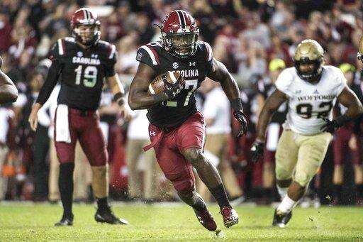 South Carolina running back Ty'Son Williams (27) runs the ball against Wofford during the second half of an NCAA college football game on Saturday, Nov. 18, 2017 in Columbia, S.C. South Carolina defeated Wofford 31-10. (AP Photo/Sean Rayford)