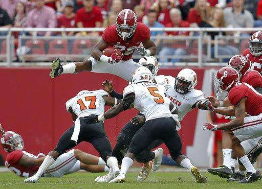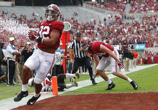 Alabama: Dominated, as expected, and got a bunch of players on the field. Defense had interceptions from Deionte Thompson, Dylan Moses and Hootie Jones. Had six tailbacks carry at least four times, and none topped seven carries.
