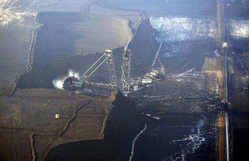 An excavator mines brown coal in the Hambach mine near Kerpen, Germany, Friday, Nov. 17, 2017, when the global talks on curbing climate change wrapped up, with delegates and observers claiming progress on several key details of the 2015 Paris accord. (Henning Kaiser/dpa via AP)