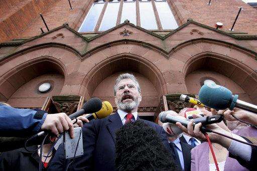 FILE - In this Tuesday, March, 6, 2007 file photo, Sinn Fein President Gerry Adams speaks to the media during a press conference in West Belfast, Northern Ireland. Gerry Adams has announced that he plans to step down as leader of Sinn Fein next year after heading the party for over 30 years. Adams said in a speech at the party's annual conference in Dublin on Saturday, Nov. 18, 2017 that he will not stand for the next Irish parliamentary election. (AP Photo/Peter Morrison, file) The Associated Press