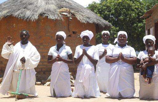 Apostolic worshippers pray in Ziboza village, Zimbabwe, Saturday, Nov. 18, 2017, as crowds of several thousand people gathered in the capital Harare demanding the departure of President Robert Mugabe after nearly four decades in power. (AP Photo)