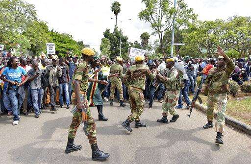 Soldiers have begun approaching the several thousand demonstrators in Zimbabwe's capital and urging them to head to the Zimbabwe Grounds, where speeches are set to be delivered.
