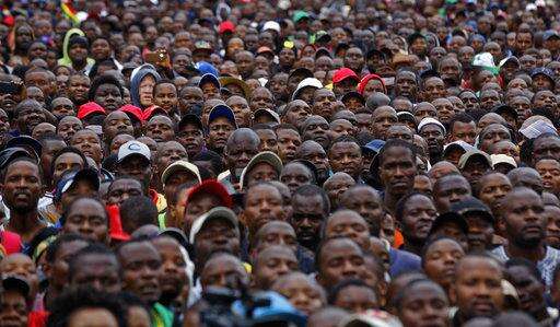 Protesters gather at a demonstration of tens of thousands at Zimbabwe Grounds in Harare, Zimbabwe Saturday, Nov. 18, 2017. Opponents of Mugabe are demonstrating for the ouster of the 93-year-old leader who is virtually powerless and deserted by most of his allies. (AP Photo/Ben Curtis)