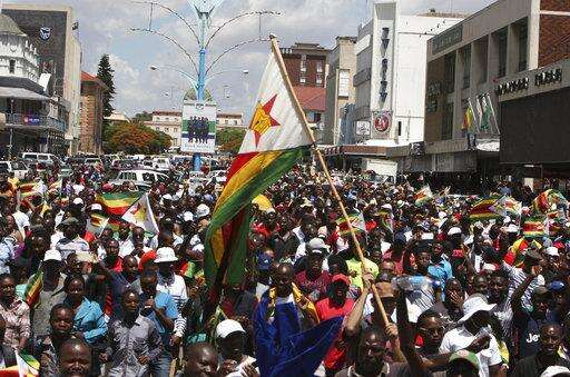 Euphoric crowds march on the streets of Harare, demanding the departure of President Robert Mugabe, Saturday Nov, 18, 2017. The military, which put Mugabe under house arrest this week, has approved the demonstration that includes people from across the political spectrum. (AP Photo/Tsvangirayi Mukwazhi)