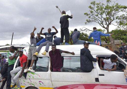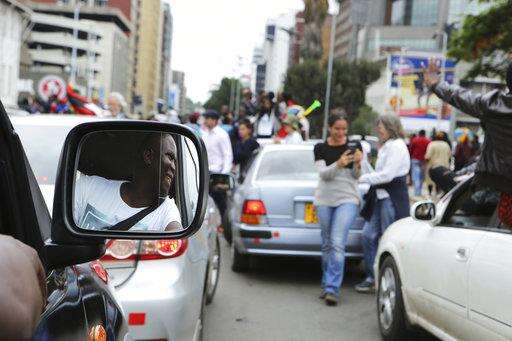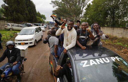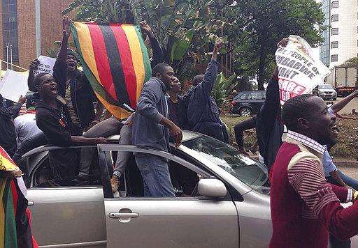 People cheer from the roof of a vehicle as euphoric crowds of several thousand people gathered in Zimbabwe's capital, Harare Saturday, Nov. 18, 2017 to demand the departure of President Robert Mugabe after nearly four decades in power. The 93-year-old Mugabe, the world's oldest head of state, is said to be asking for more time amid negotiations with regional leaders that seek his exit with a veneer of dignity. (AP Photo)