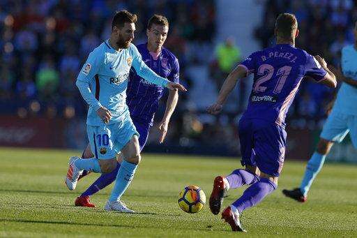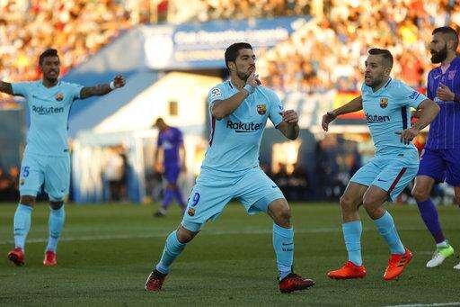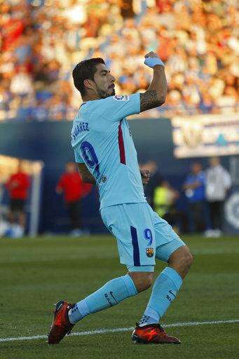 Suarez opened the scoring after Leganes goalkeeper Ivan Cuellar dropped the ball in front of the goal after a cross by Paco Alcacer. Suarez's second in the 60th was a rebound shot after Cuellar parried a shot by Lionel Messi. Suarez hadn't scored in more than a month.