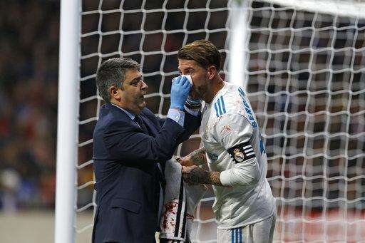 Real defender Sergio Ramos had to be replaced at halftime after breaking his nose when he was struck by Atletico defender Lucas Hernandez.