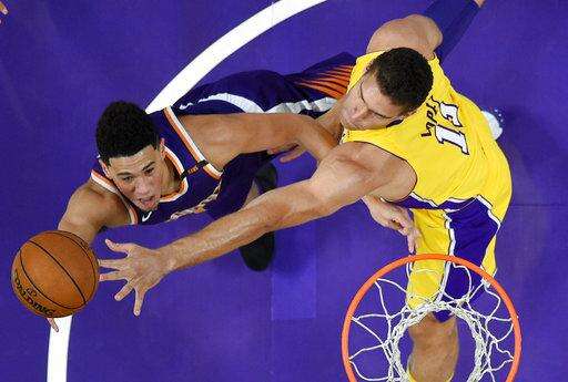 One night after giving up 90 points in the first half to Houston, the Suns yielded a measly 53 first-half points to the Lakers while jumping out to a 12-point lead. Booker nailed two 3-pointers in the final 14 seconds, with Ball's first field goal on a layup sandwiched between them.