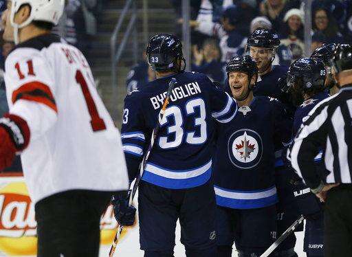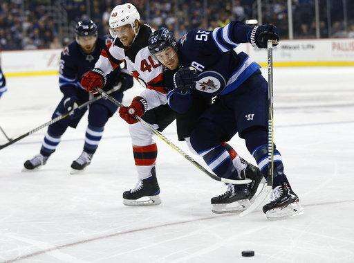 Jets score 5 in 2nd, beat Devils 5-2 for 4th straight win