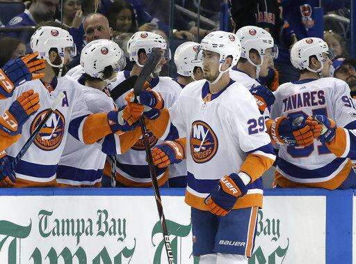 NOTES: New York has scored five or more goals in three consecutive games for the first time since Jan. 30-Feb. 4, 1996, according to the Elias Sports Bureau. ... The Islanders are 9-0-0 when scoring at least 5 goals this season. ... Islanders RW Cal Clutterbuck (illness) didn't play. ... Tampa Bay swept the three-game season series in 2016-17, outscoring the Islanders 14-2. ... It's just the fourth time the Lightning trailed after the first period (1-1-2) this season. ... Tavares has 19 assists and 29 points in 27 games against the Lightning. ... Tampa Bay entered outscoring opponents 54-28 during the first two periods.