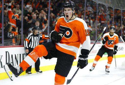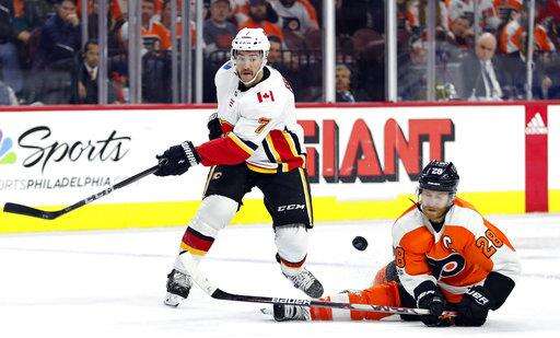 NOTES: Flyers D Radko Gudas sat out Saturday's game while awaiting a phone hearing with the NHL Department of Player Safety for his slash to the neck of Winnipeg Jets forward Mathieu Perreault. Gudas is expected to have the hearing on Sunday. ... Flames LW Matthew Tkachuk served a one-game suspension for tapping Detroit Red Wings forward Luke Witkowski in the back of the leg on Wednesday night, sparking two fights near the end of an 8-2 loss.