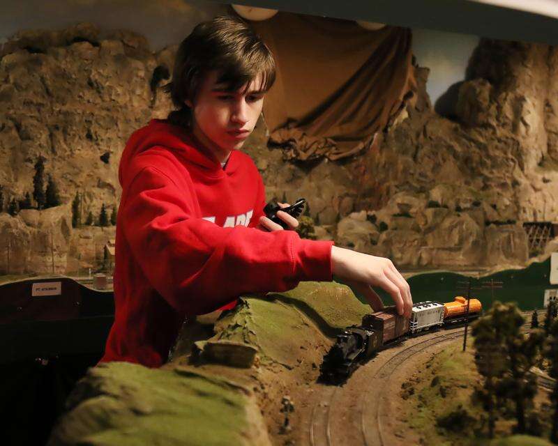 Jack Follett, 16, of Woodstock works on his train Sunday during the Lake County Model Railroad Club's fall open house in Wauconda. Train enthusiasts and families watched and learned about model trains as they traveled around the 1,800-square-foot room. Gilbert R. Boucher II/gboucher@dailyherald.com