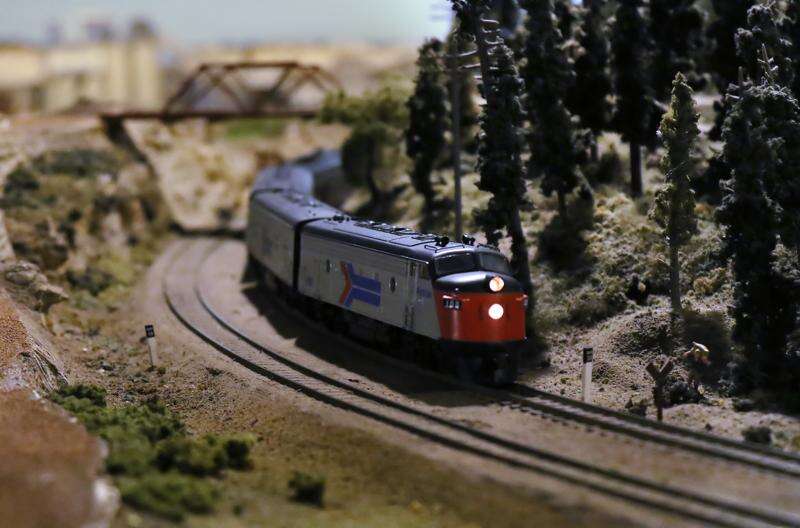 An Amtrak model train moves around the track Sunday during the Lake County Model Railroad Club's fall open house in Wauconda. Gilbert R. Boucher II/gboucher@dailyherald.com