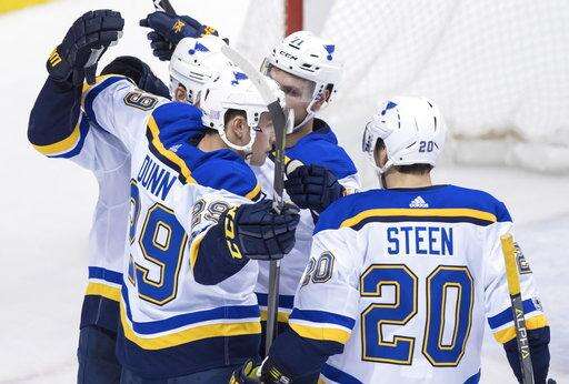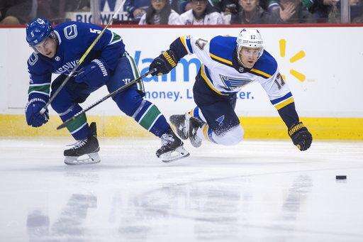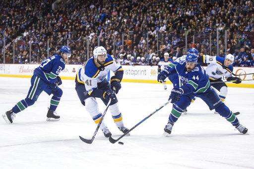 NOTES: Granlund's short-handed effort was his first goal and point in nine games. ... Parayko and Edmundson's goals were St. Louis' league-leading 20th and 21st by a defenseman. ... Canucks D Christopher Tanev (hand) and D Troy Stecher (knee) took part in the morning skate and will join the team when it flies to Philadelphia on Sunday. ... Vancouver is 6-3-0 on the road this season. ... The Canucks don't play at home again until Dec. 2 against Toronto.
