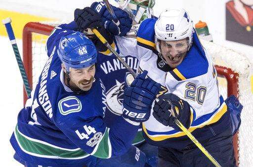 Vancouver led 3-1 midway through the second before St. Louis rallied.