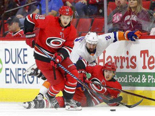 NOTES: Teravainen was playing in his 100th game for Carolina. ... Islanders captain Andrew Ladd is a former Hurricane. ... Islanders RW Cal Clutterbuck was out with an illness. ... New York D and former Hurricane Dennis Seidenberg was a healthy extra along with teammate D Scott Mayfield. ... Carolina C Victor Rask and D Haydn Fleury were healthy scratches. ... The teams' other meetings this season are in Raleigh on Feb. 16 and New York on March 18.