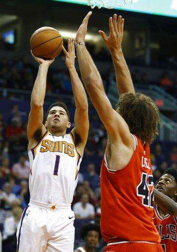 Bulls: Chicago has not won two in a row yet this season. ... Bulls opened a four-game road trip. ... Ex-Sun Lopez had 10 points and five rebounds in the first quarter, six points and five rebounds the rest of the way. ... Teams have split their series each of the previous three seasons.