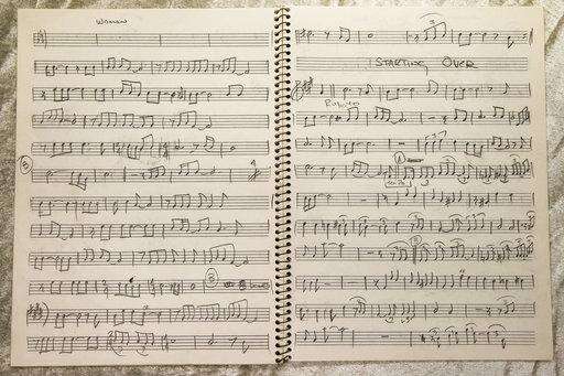 The hand written song 'Woman' 'Just like starting over' by John Lennon is displayed at the police department headquarters in Berlin, Tuesday, Nov. 21, 2017 after German police have arrested a man suspected of handling stolen objects from the estate of John Lennon, including diaries which were stolen from Lennon's widow, Yoko Ono, in New York in 2006. (AP Photo/Markus Schreiber) The Associated Press