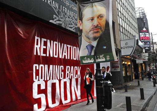A banner showing Lebanese Prime Minister Saad Hariri with Arabic that reads, "We are all with you," hangs on a street in Beirut, Lebanon, Tuesday, Nov. 21, 2017. Hariri is expected to leave Paris Tuesday for Cairo where the Arab League is holding meetings on regional tensions and then head home to Beirut to lay out his political position. Lebanon was plunged into crisis earlier this month by his surprise resignation from Saudi Arabia. (AP Photo/Hussein Malla) The Associated Press