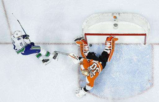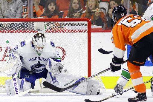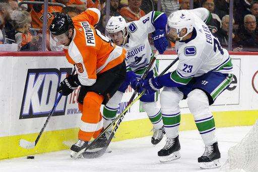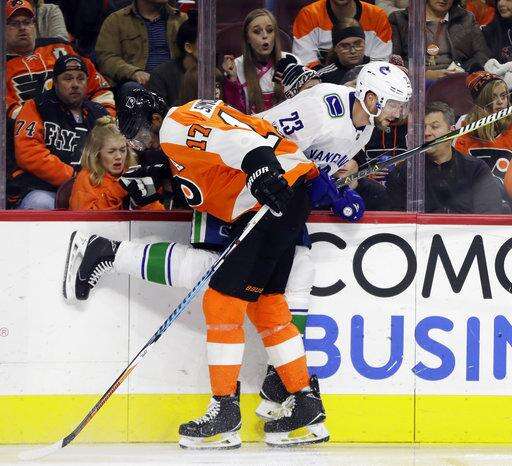 NOTES: The Canucks announced before the game that RW Derek Dorsett has returned to Vancouver to be evaluated by the team's medical staff for stiffness in his back and neck. The 30-year-old Dorsett missed 78 games last season after undergoing a cervical fusion procedure. ... Flyers D Radko Gudas served the second game of his 10-game suspension for slashing Vancouver C Mathieu Perreault in the back of the neck.