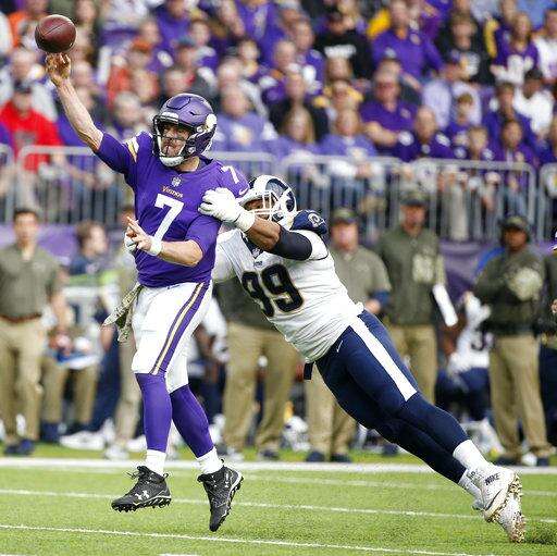 He is quicker and more elusive than Bradford, moving around behind the line with a keen blend of awareness and boldness. There was no greater example of this than on Sunday against the Los Angeles Rams, when on second-and-5 from the 30-yard line, Keenum sidestepped Robert Quinn and ducked under Aaron Donald to buy just enough time for an on-target heave to Adam Thielen that netted 12 yards late in the first quarter.