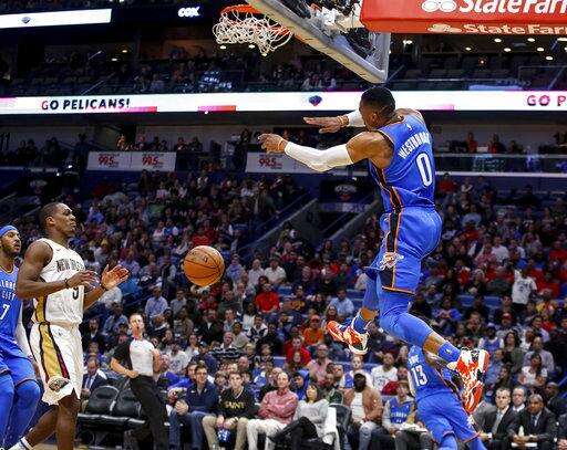 Westbrook has been his usual self in many ways. He's averaging 20.1 points, 8.7 rebounds and 9.7 assists. After setting the single-season record with 42 triple-doubles last season, he leads the league with five this year.