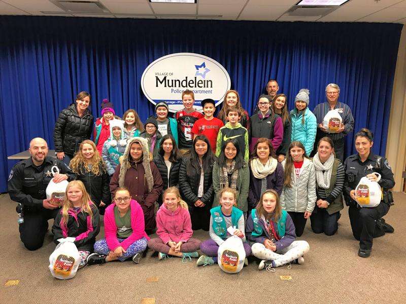 Mundelein police teamed with a local restaurant and Girl Scouts this week to provide 40 needy families with Thanksgiving meals.