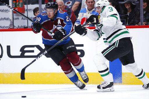 NOTES: MacKinnon leads the Avalanche in points (25) and assists (18). ... Varlamov missed a second consecutive game because of illness. The Avalanche recalled G Andrew Hammond from Belleville of the AHL to serve as the backup goalie while Varlamov recovers. ... Dallas C Martin Hanzal remains day to day with a hand injury. ... Dallas G Mike McKenna was active as the backup to Bishop, with G Kari Lehtonen excused from the game due to personal reasons.