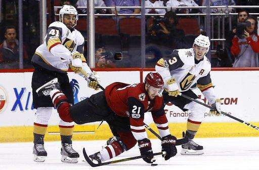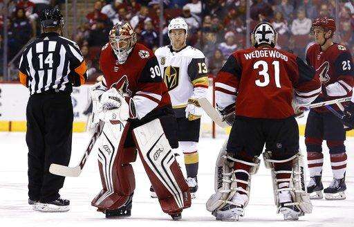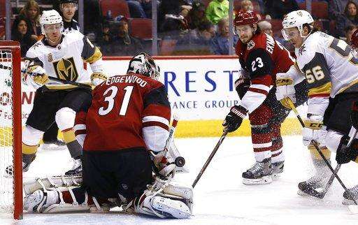 NOTES: Knights are 15-6-1 in their inaugural season. ... Both teams were coming off overtime victories the previous night - Vegas 5-4 at home over San Jose, Arizona 3-2 at home over the Los Angeles Kings. ... Perlini scored for the fourth straight game. ... Subban appeared in 127 games for AHL's Providence Bruins but this was only his seventh career NHL game. Five have been with Vegas this season. ... Knights were 1-5 on power plays, Arizona 0-5, including 1:29 with a two-man advantage.