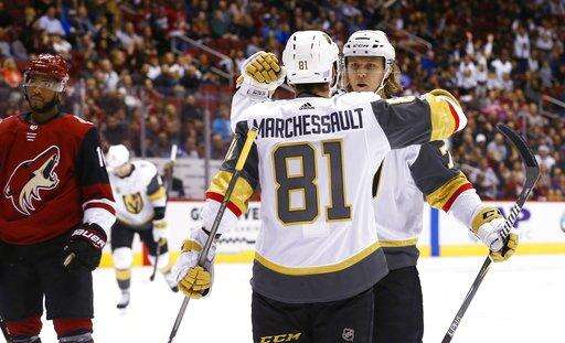 Jonathan Marchessault added an empty-net goal right before the buzzer and an earlier pair of assists for the Knights, now 3-0 against Arizona.
