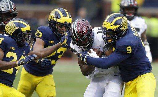After winning 10 games in each of his previous two years, the Wolverines can't finish the season with more than nine victories after losing 31-20 to No. 8 Ohio State. They also fell to 1-5 under Harbaugh against the rival Buckeyes and Michigan State Spartans.