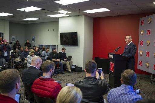Nebraska athletic director Bill Moos speaking to the press about the firing of the head coach Mike Riley in Lincoln, Neb., Saturday, Nov. 25, 2017. (AP Photo/John Peterson) The Associated Press