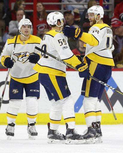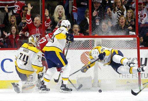NOTES: Rask had a goal and an assist for his first multi-point game since opening night. ... Saros recorded an assist on Arvidsson's first-period goal. It was the Predators goalie's second career assist. ... Hurricanes F Lee Stempniak (upper body injury) missed his 20th game. ... F Miikka Salomaki and F Cody McLeod were scratched for the Predators. ... D Klas Dahlback and F Phillip Di Giuseppe were the Hurricanes' healthy scratches.