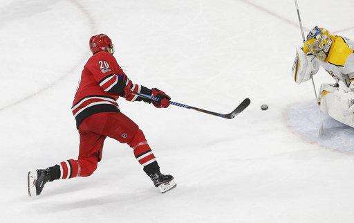 After Hurricanes goalie Scott Darling stopped Filip Forsberg's second attempt for Nashville, Teravainen lifted a backhand over Saros' left shoulder for the winner.