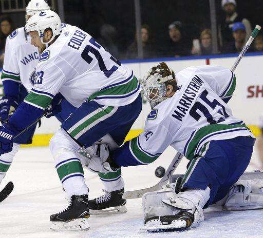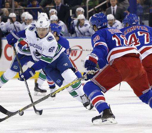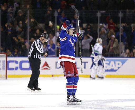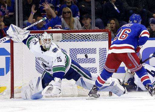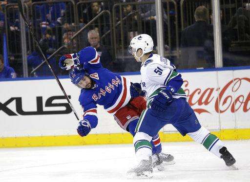 Jesper Fast and Michael Grabner also scored for New York. Loui Eriksson, Jake Virtanen and Sam Gagner scored for Vancouver, and Jacob Markstrom stopped 17 shots.